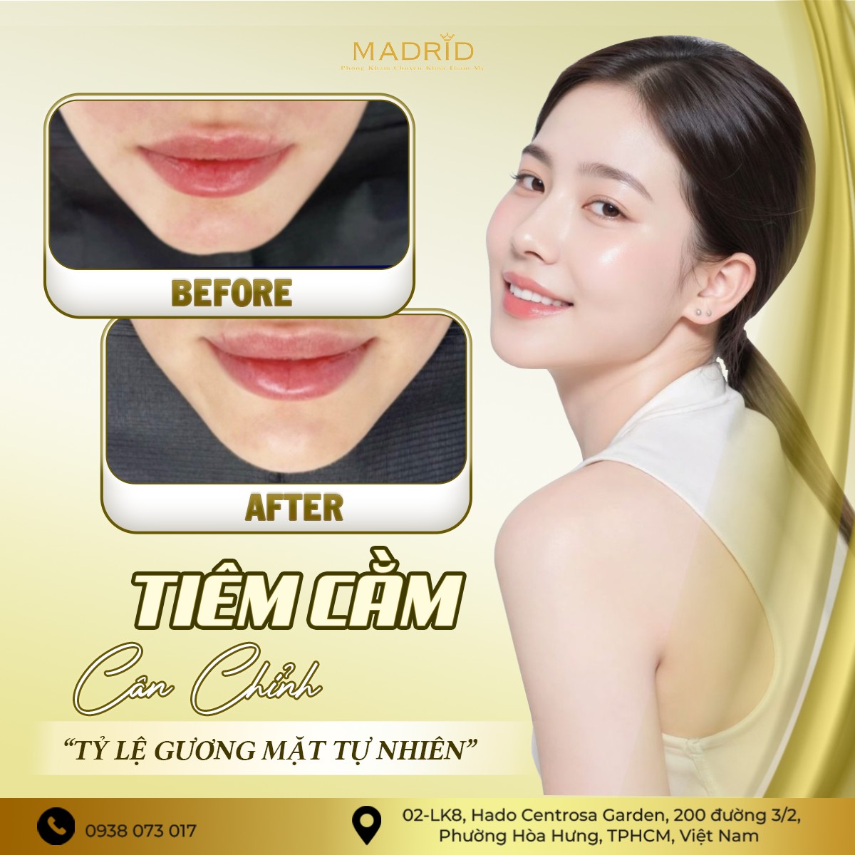 Inbox Madrid để được bác sĩ chuyên khoa trực tiếp thăm khám và tư vấn giải pháp tiêm cằm phù hợp với tỷ lệ gương mặt của bạn.